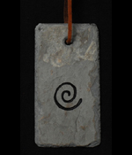 Fashioned from reclaimed roofing slate, these slate ornaments are aged over 100 years. Each piece has a wonderful patina to it, with each one varying in exact size (roughly 1.75" wide x 3" long), shape, design, and origin. You'll notice that they can be rectangular or semi-octaganal shaped.